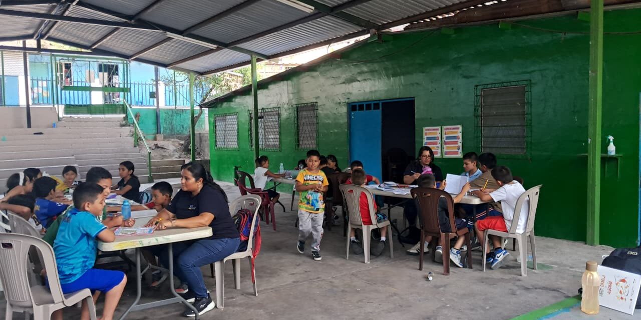El refuerzo educativo se imparte a niños y adolescentes entre 7 y 16 años de edad, de lunes a viernes, en jornadas matutinas y vespertinas en la casa comunal de la comunidad Villa de Jesús, en el Distrito de Soyapango, y en la ermita de la comunidad Cayalá, en el distrito de Ciudad Delgado, dado que ambos son espacios seguros y accesibles para facilitar la participación. Un equipo de maestras apoya en la realización de las tareas escolares y refuerza contenidos que presentan mayor dificultad en la escuela, con énfasis en el área de lenguaje y matemáticas.