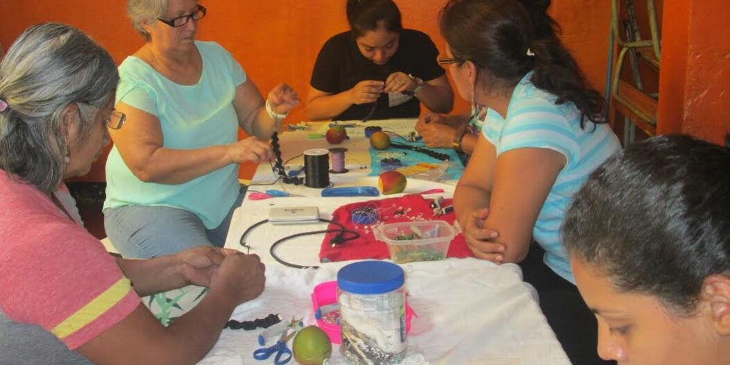 De forma profesional y divertida, experimentando con distintas técnicas y materiales, trece mujeres del sector comercio informal en Soyapango recibieron, de febrero a mayo, un taller de creación de Joyería Artesanal. Esta formación les da la posibilidad de poner en marcha un pequeño negocio que les permita mejorar su situación económica, además de incidir positivamente en la percepción que tienen de sí mismas como mujeres capaces.