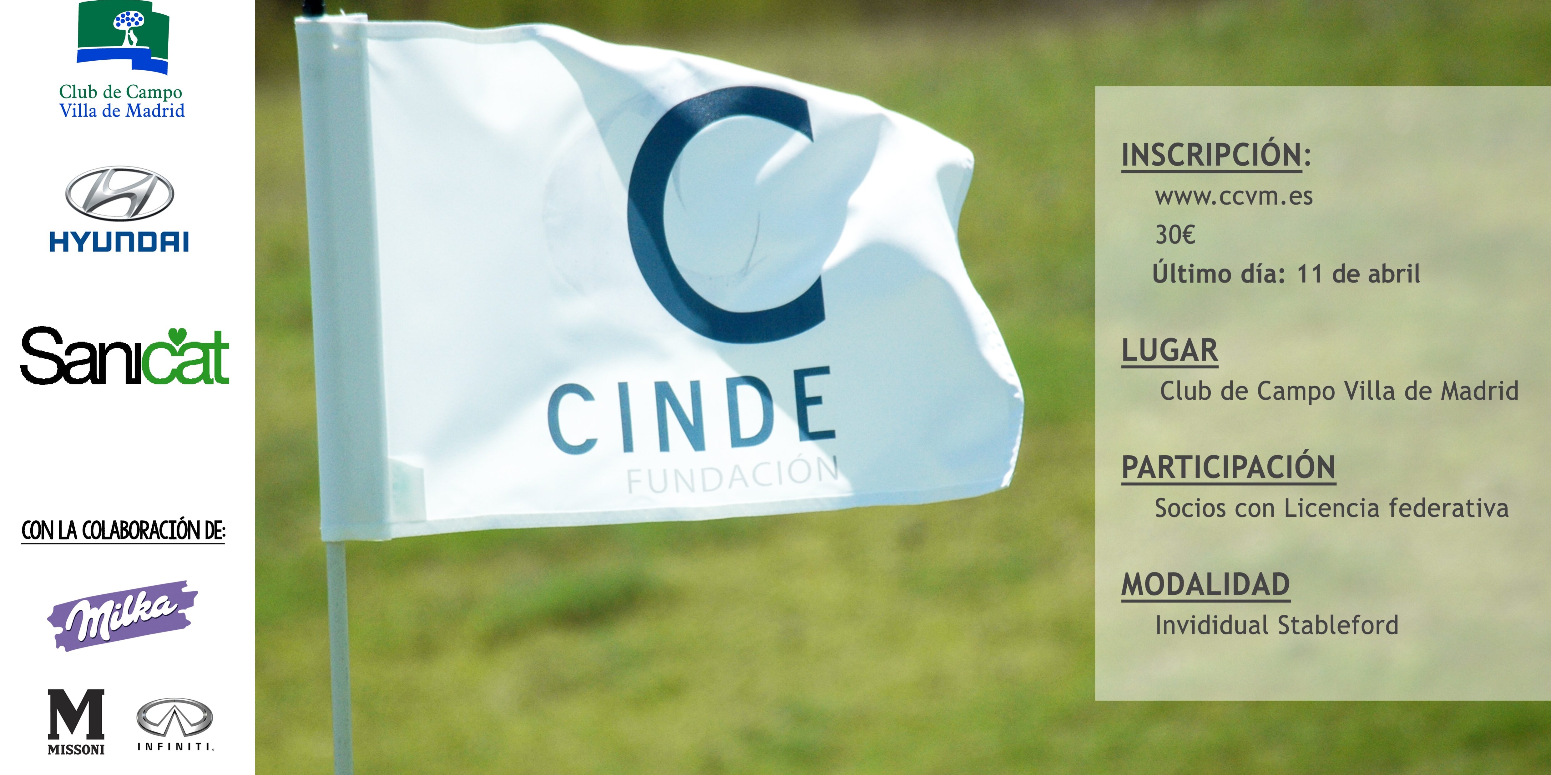 El Torneo Benéfico de Golf vuelve este sábado 16 de abril, en la que es ya su quinta edición. Con 140 jugadores inscritos, este solidario evento tendrá lugar en el inmejorable campo de golf del Club de Campo Villa de Madrid. Desde CINDE queremos dar las gracias a todos los jugadores, a los voluntarios implicados, al Club y, por supuesto, a los patrocinadores que han querido colaborar para que este evento logre los resultados esperados. ¡Gracias a todos! Esperamos que el evento sea, como siempre, un éxito.